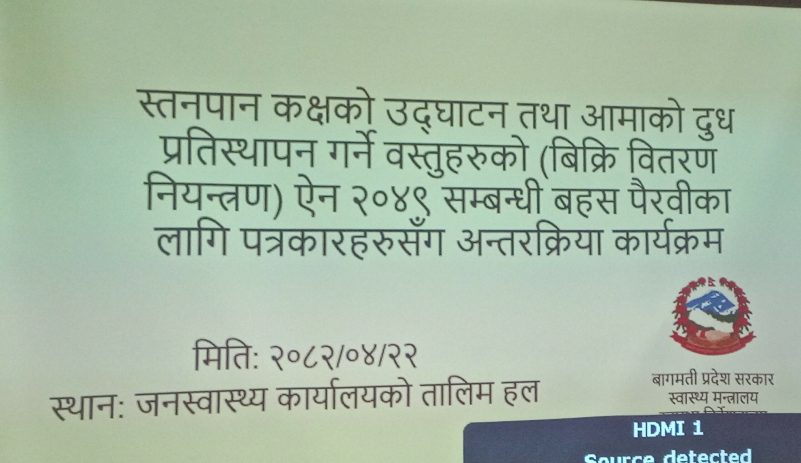 जनस्वास्थ्य कार्यालय ललितपुरले स्तनपान कक्षको स्थापना तथा स्तनपान सप्ताहको आयोजना मार्फत आमाहरूको सशक्तिकरण र शिशु स्वास्थ्यप्रति सजगता बढाउने लक्ष्य लिएको जनाएको छ।