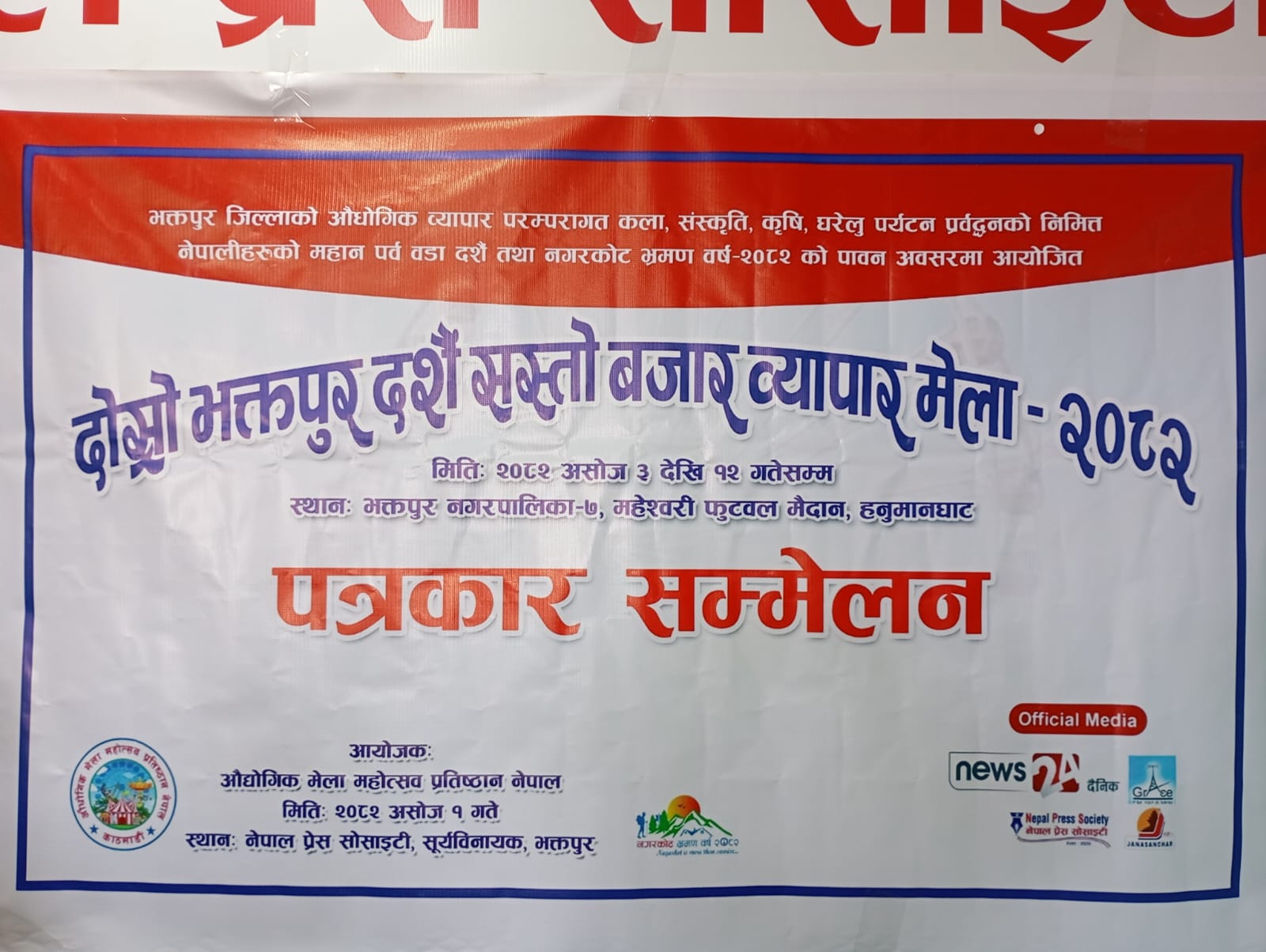 बुधबार भक्तपुरमा पत्रकार सम्मेलन गर्दै औद्योगिक मेला महोत्सव प्रतिष्ठान नेपालले महान पर्व दशैं तथा नगरकोट भ्रमण वर्ष २०८२ को अवसरमा मेलाको आयोजना गर्न लागेको जानकारी गरायो। मेला असोज ३ गतेदेखि १२ गतेसम्म भक्तपुर नगरपालिका–७, महेश्वरी फुटबल मैदान, हनुमानघाटमा सञ्चालन हुने जनाइएको छ।