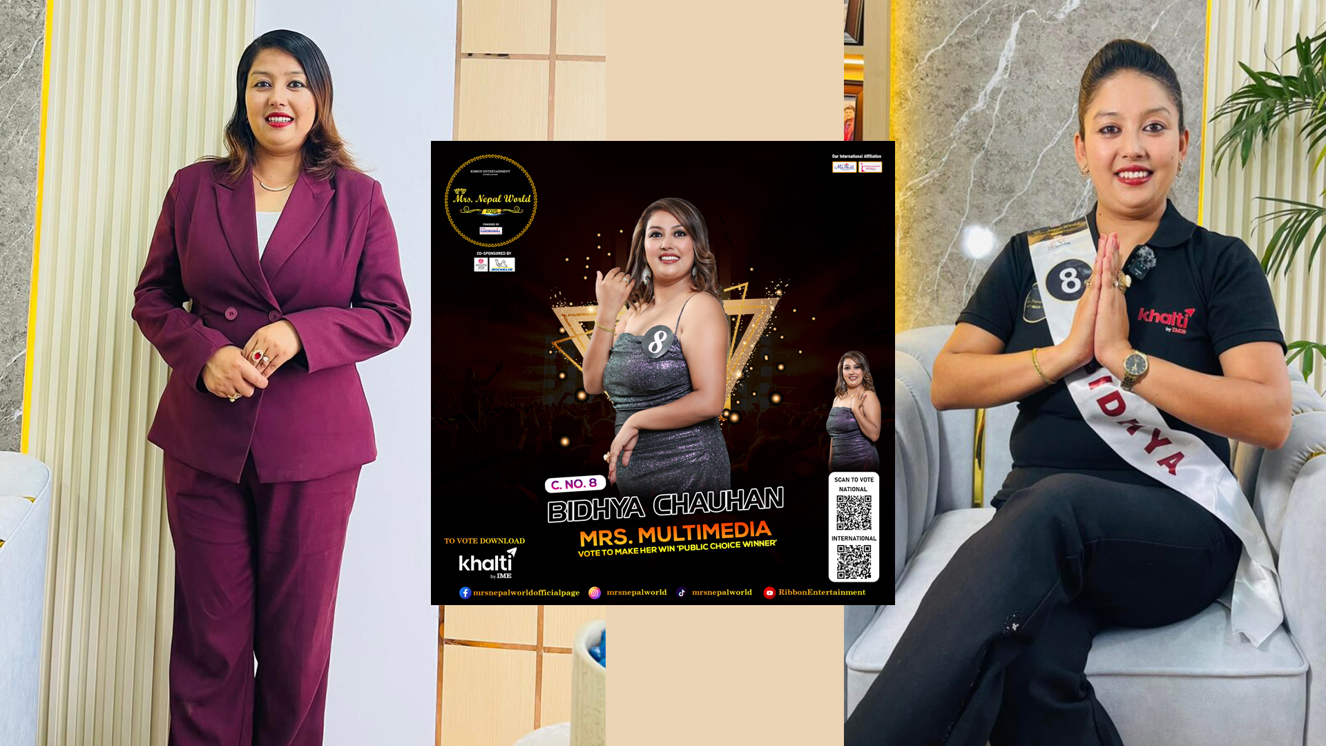 काठमाडौं । मिसेस नेपाल वर्ल्ड २०२५ का प्रतिस्पर्धीमध्ये एक नाम अहिले विशेष चर्चामा छ, त्यो हो बिध्या चौहान, रामेछापको दुर्गम गाउँ फूलासीमा जन्मेकी उनी आज न केवल सौन्दर्य प्रतियोगिताको प्रतिभागी मात्र हैन एउटा सशक्त महिला नेतृत्व र उद्यमशीलताको पहिचानका रूपमा स्थापित हुँदै गएकी छन्।