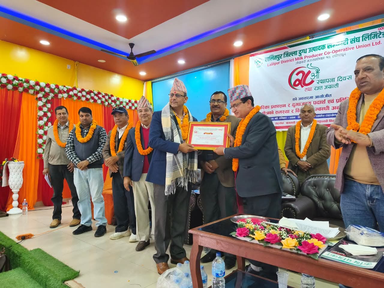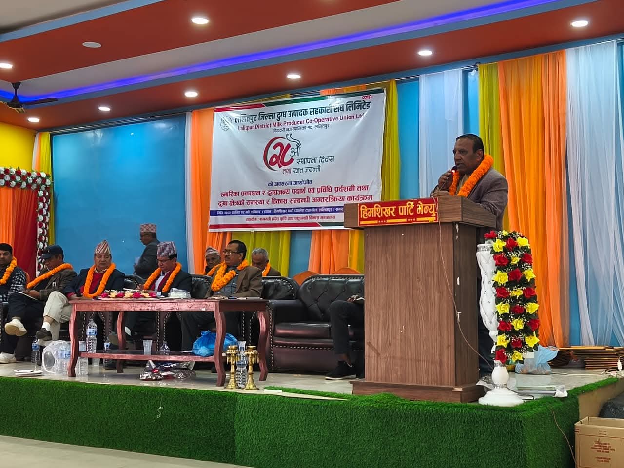 ललितपुर, कार्तिक २९ गते – ललितपुर जिल्ला दुग्ध उत्पादक सहकारी संघको २८औँ स्थापना दिवस तथा रजत जयन्तीको अवसरमा आज एक विशेष कार्यक्रम सम्पन्न गरिएको छ। संघका अध्यक्ष श्री कृष्ण प्रसाद सापकोटाको अध्यक्षतामा तथा बागमती प्रदेश सरकारका कृषि तथा पशुपन्छी विकास मन्त्री माननीय मदुसुदन पौडेलको प्रमुख आतिथ्यतामा सम्पन्न उक्त कार्यक्रममा स्मारिका पुस्तक विमोचन, दुग्ध क्षेत्रको समस्या–सम्बन्धी अन्तरक्रिया तथा सम्मान कार्यक्रम मुख्य आकर्षण बनेका थिए।