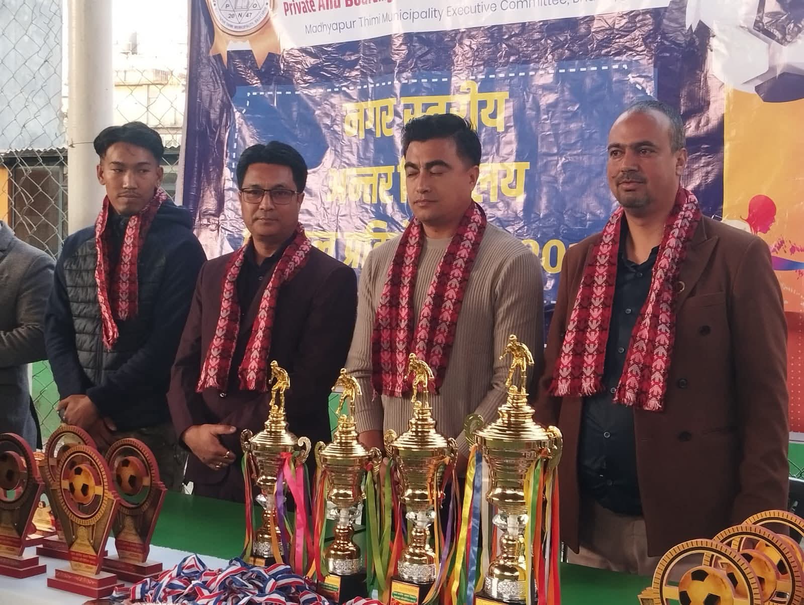 मध्यपुर थिमी/ मध्यपुर प्याब्सनद्वारा आयोजना गरिएको फूटसल प्रतियोगिता तीन दिनको निरन्तर प्रतिस्पर्धा र उत्साहपूर्ण वातावरणबीच सफलतापूर्वक सम्पन्न भएको छ। प्रतियोगिताको उद्घाटन सत्रका प्रमुख अतिथि प्याब्सन केन्द्रीय कोषाध्यक्ष गणेश बाबु पोखरेलले क्रीडा गतिविधिले विद्यार्थीको सर्वांगीण विकासमा महत्वपूर्ण योगदान पुर्याउने बताउँदै कार्यक्रमको औपचारिक शुभारम्भ गर्नुभयो।