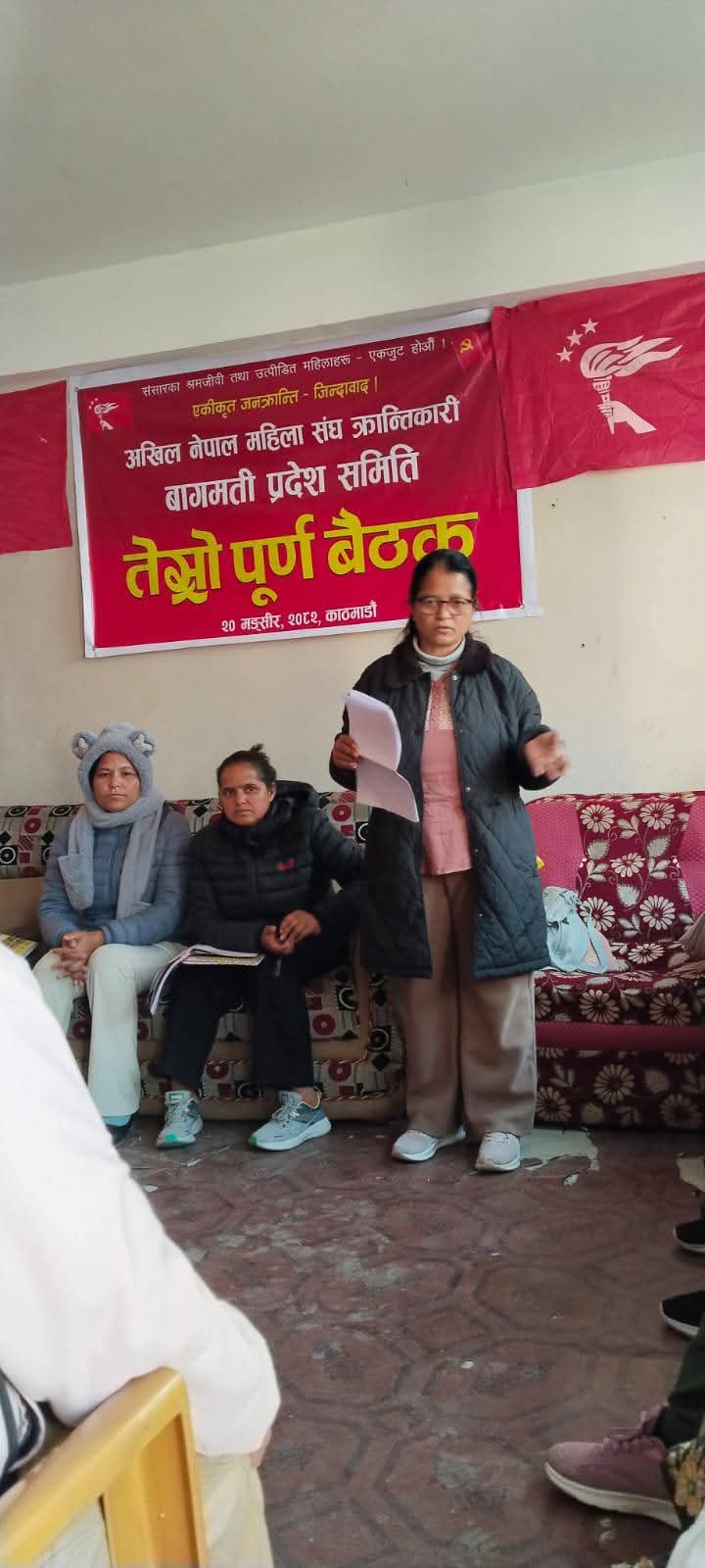 बैठकले वर्तमान सन्दर्भकाेसमीक्षा चरणमा महिला, छात्रा, श्रमिक तथा उपेक्षित वर्गले भोगिरहेको दोहोरो उत्पीडन, आर्थिक निर्भरता र राजनीतिक असमानता विरुद्ध संगठनलाई अझ जागृत, जनमुखी र निर्णयकारी रूपले अगाडि सार्नुपर्ने निष्कर्ष निकालियो ।