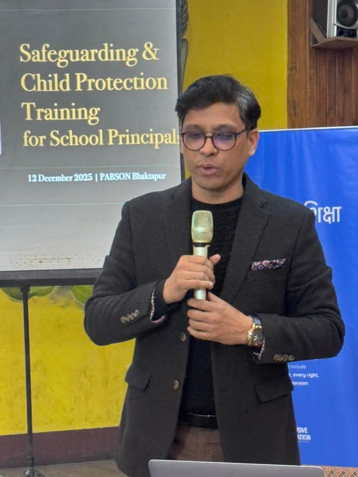 प्याब्सन भक्तपुर जिल्ला कार्यसमितिको तालिम उपसमितिले Inclusive Education Nepal सँगको सहकार्यमा आयोजना गरिएको Safeguarding & Child Protection Training for Principals 2082 आज सफलतापूर्वक सम्पन्न भएको छ। मध्यपुर ठिमीस्थित यचु पार्टी भेन्युमा सम्पन्न तालिममा करिब ७६ जना संस्थापक, प्रिन्सिपल, डायरेक्टर तथा प्रशासनिक भूमिकामा रहेका व्यक्तिहरूको सक्रिय सहभागिता रहेको थियो।